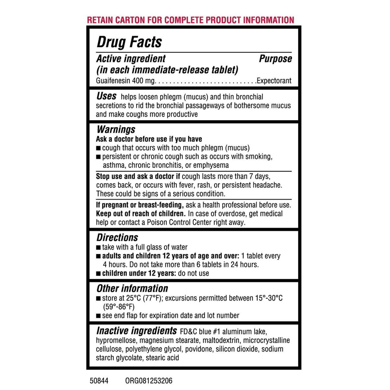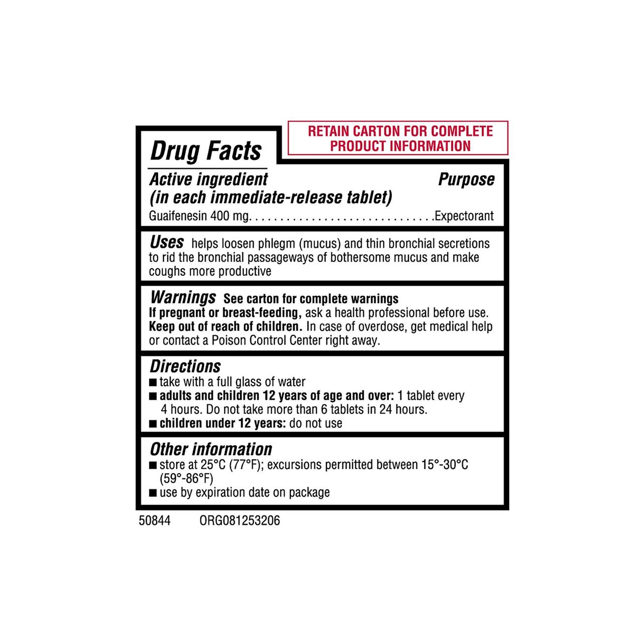•2 - bottles of 200 tablets = 400 tablets •Thins & loosens mucus •1 tablet dose •Immediate release