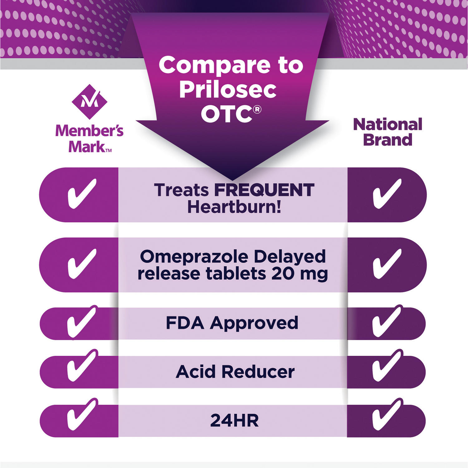 Members Mark Omeprazole Acid Reducer treats frequent heartburn (occurs two or more days a week). It is not intended for immediate relief of heartburn and may take one to four days for full effect.