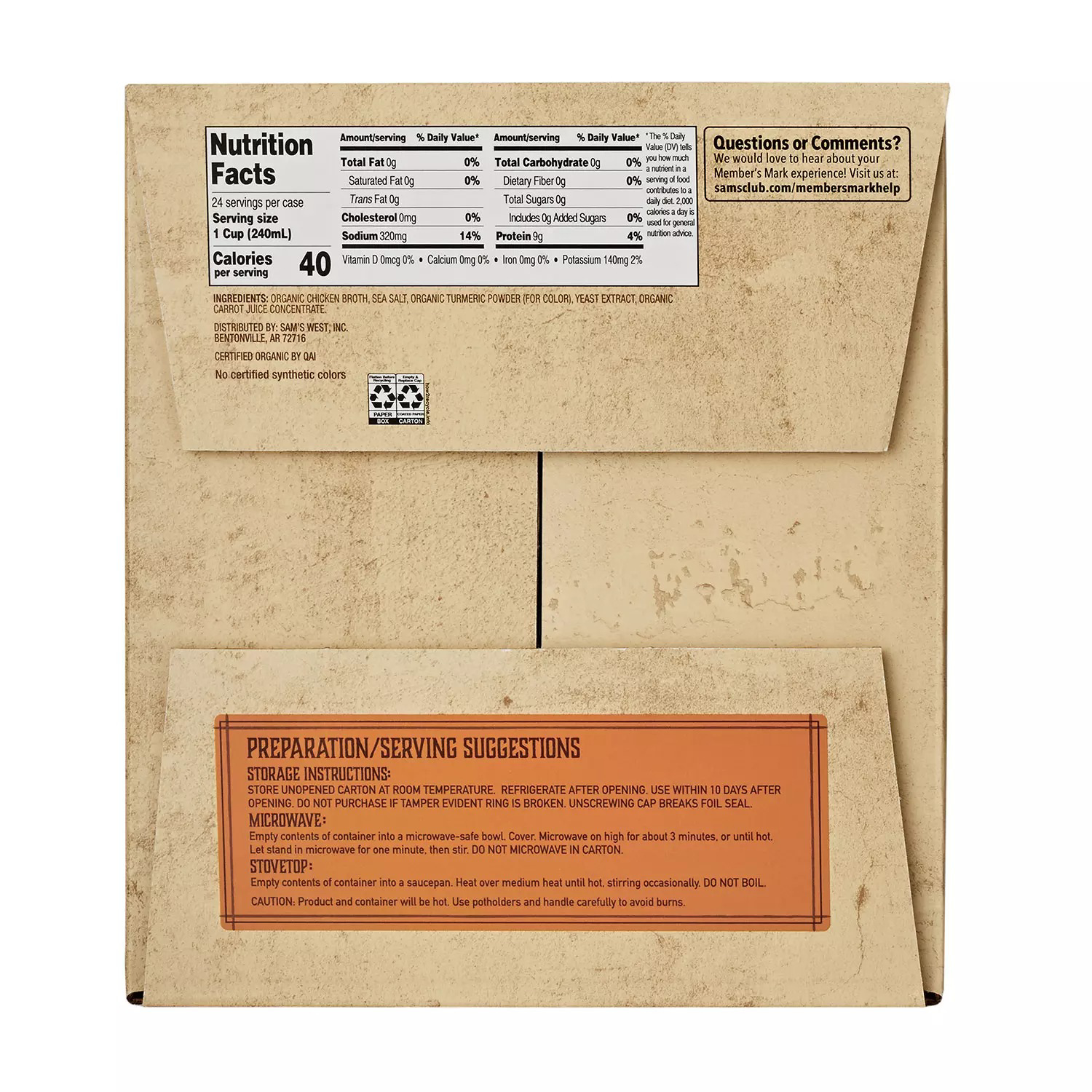 Member's Mark Organic Bone Broth is great for sipping and as a recipe ingredient. This gluten- and fat-free broth comes ready to serve out of the carton.