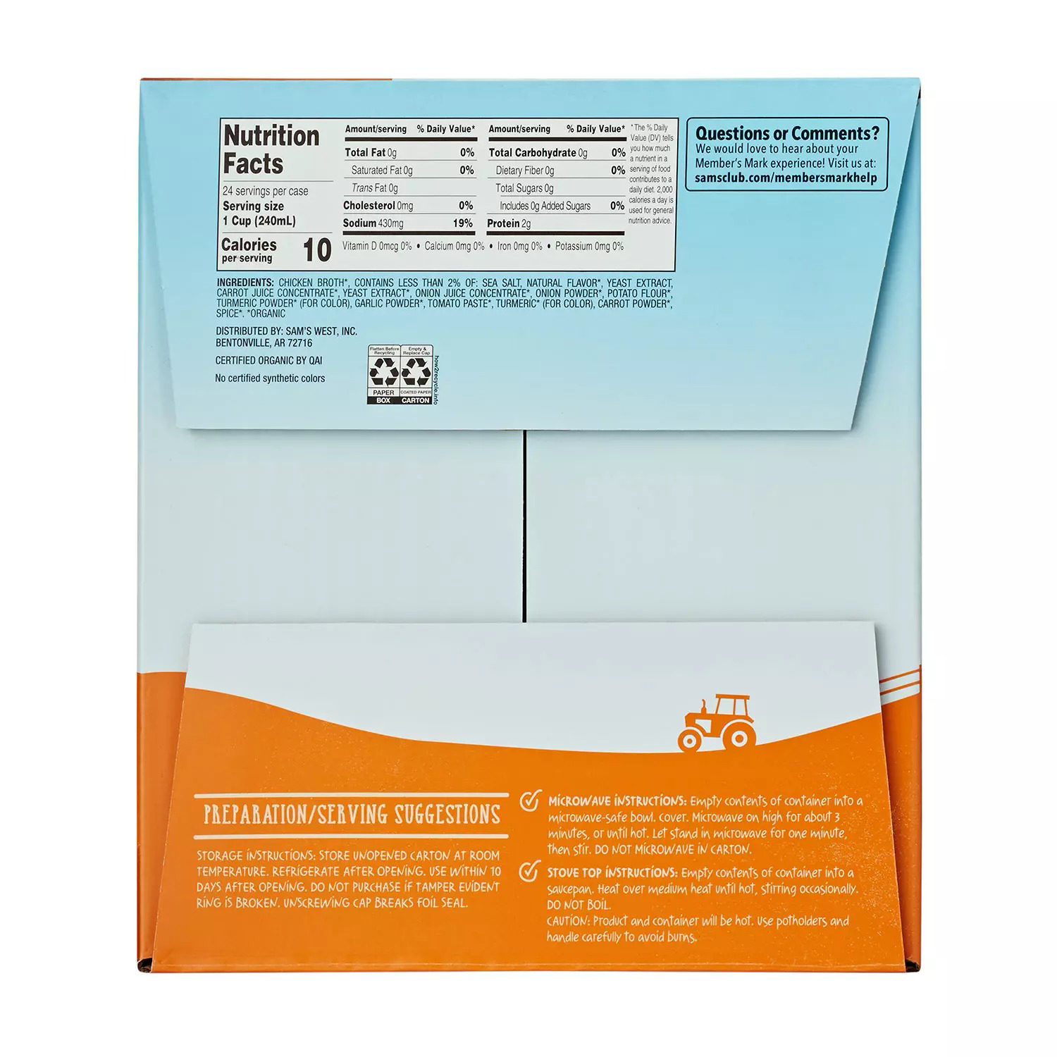 Member's Mark™ Organic Chicken Broth is a staple for the home kitchen and the service kitchen. Use this premium chicken broth soup as a base for many dishes. It can also be sipped on its own for a warm and comforting broth.