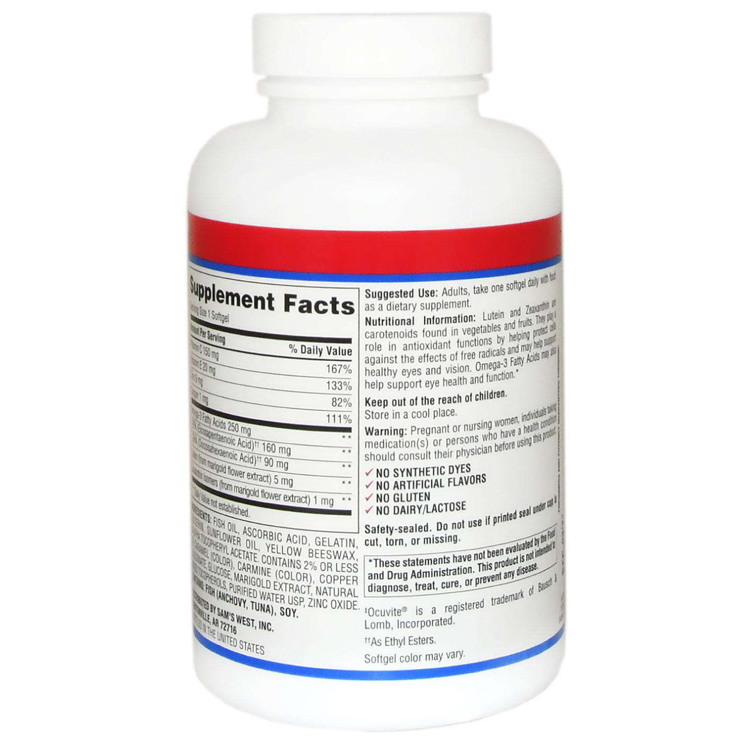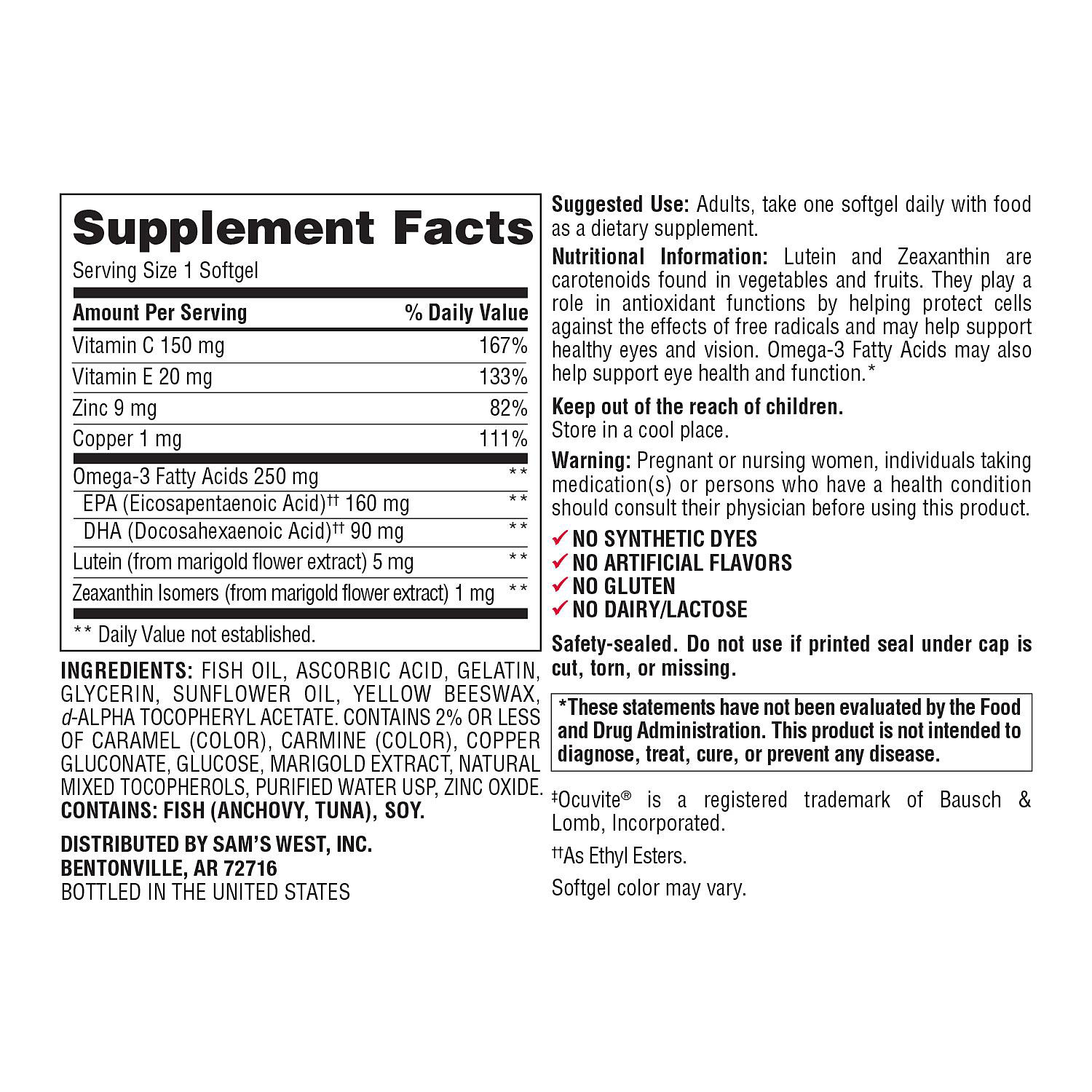 Member's Mark Vision Multi 50+ vitamins contain lutein and zeaxanthin which play a role in antioxidant functions by helping protect cells against the effects of free radicals and may help support healthy eyes and vision. Omega-3 fatty acids may also help support eye health and function.*