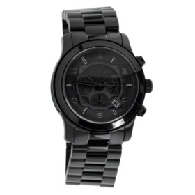 The Men's Runway Watch by Michael Kors features a black stainless-steel case and bracelet with black dial and hands. It is a sleek addition to your watch collection.