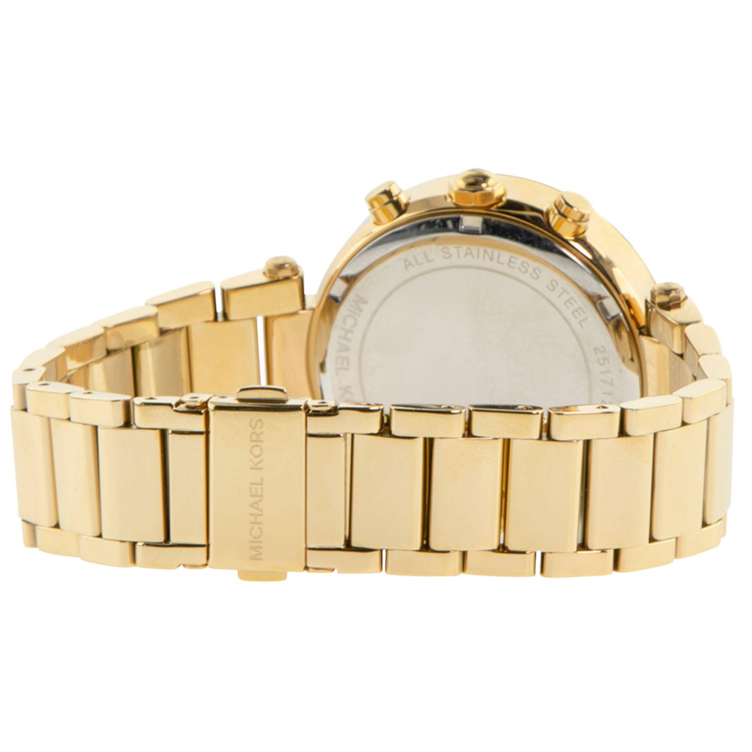 The Parker Watch by Michael Kors features a gold stainless-steel case and bracelet with sparkling pave crystal details. The perfect watch to add a touch of glamour to your wardrobe.