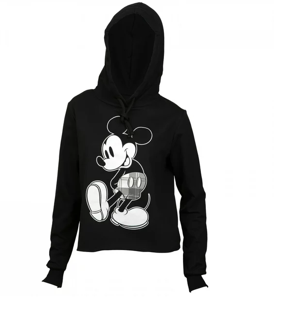 Officially licensed Disney Mickey Mouse Classic Plaid Juniors Crop Hoodie. This black Disney Juniors Crop Hoodie is made from comfy fleece and features a cute Mickey Mouse Classic Plaid character design.