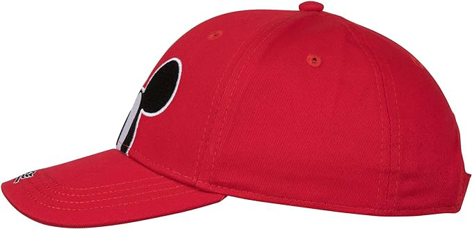 Officially licensed Mickey Mouse Peeking Red Colorway Youth Cap. This red "Disney" Youth Cap is made from polyester and features a classic Peeking "Mickey Mouse" character design on the front with rounded bill and adjustable velcro strapback.