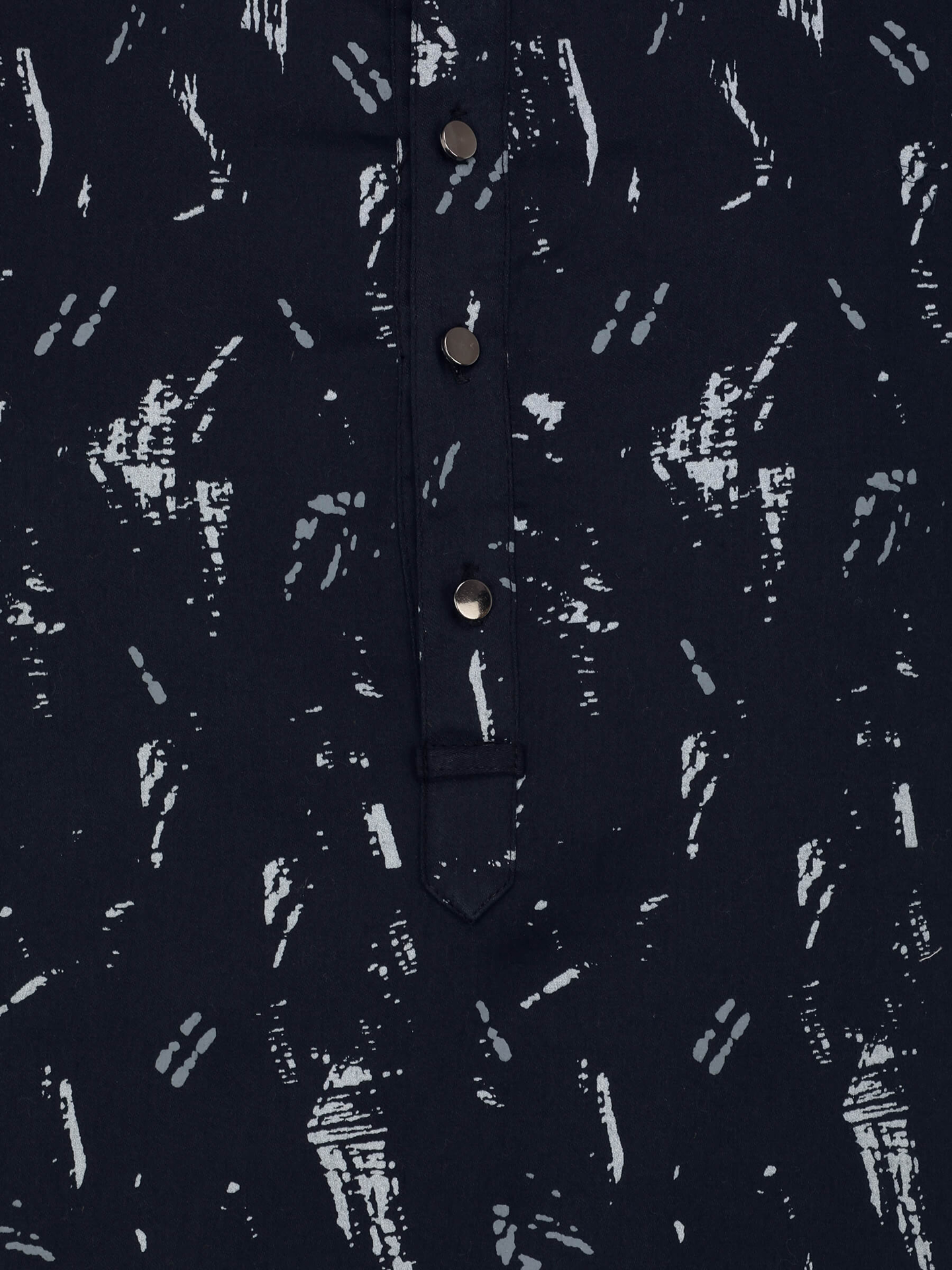 Midnight blue cotton slim fit kurta with white and grey prints. Features in-seam side pockets. this kurta useing very comfortable. made in bangladesh.