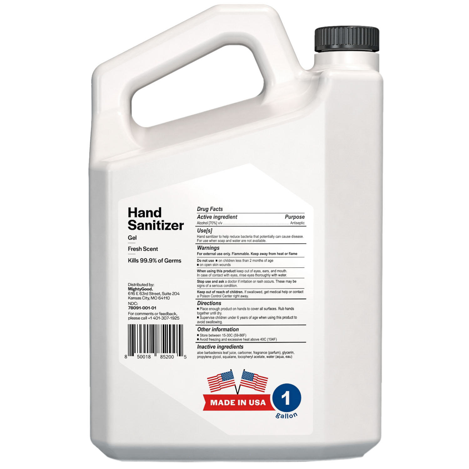 MightyGood Hand Sanitizer Gel makes it easy to kill germs quickly and effectively. With one push of the built-in pump, the right amount of sanitizer is dispensed every time. No need to worry about using too much or too little—just pump the bottle and rub your hands together thoroughly until dry. This one-gallon bottle can refill either four 32 fl. oz. bottles or two 64 fl. oz. bottles.