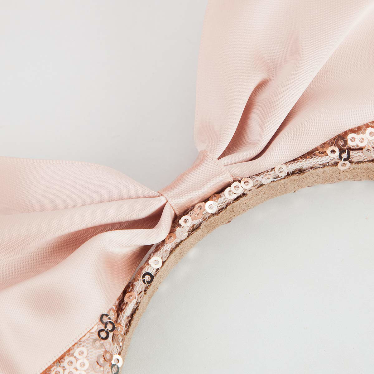 Like Minnie Mouse, you'll be a sparkling, timeless classic in this rose gold sequined ear headband with a pretty pink satin bow.
