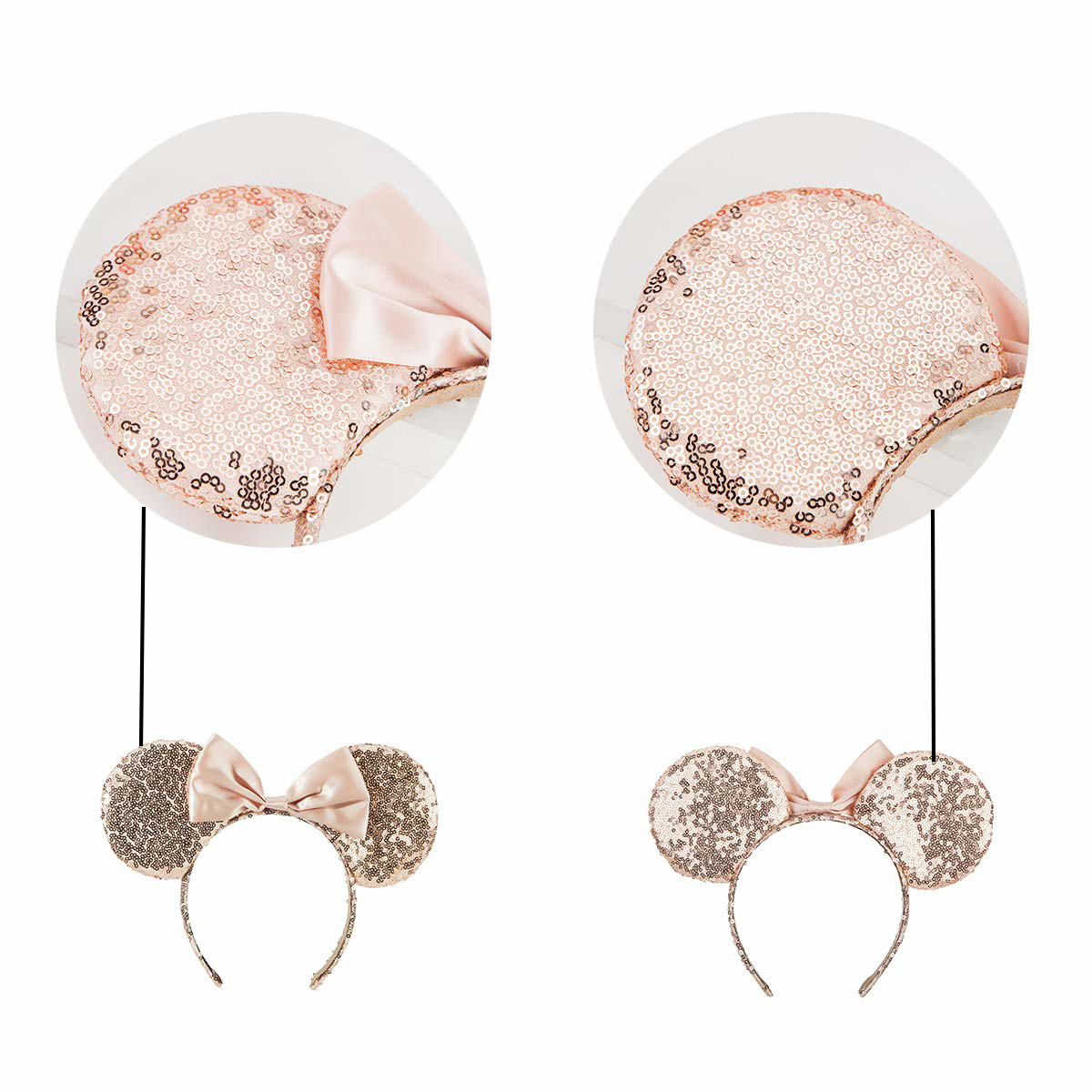 Disney Minnie Mouse Sequin Rose Gold Mouse Ears Bow Headband