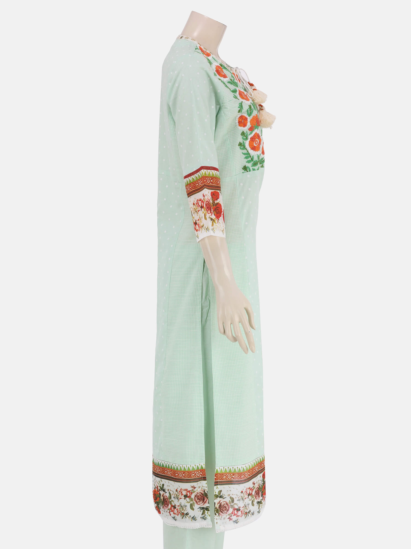Mint Green Printed and Embroidered Viscose-Cotton Kameez Set