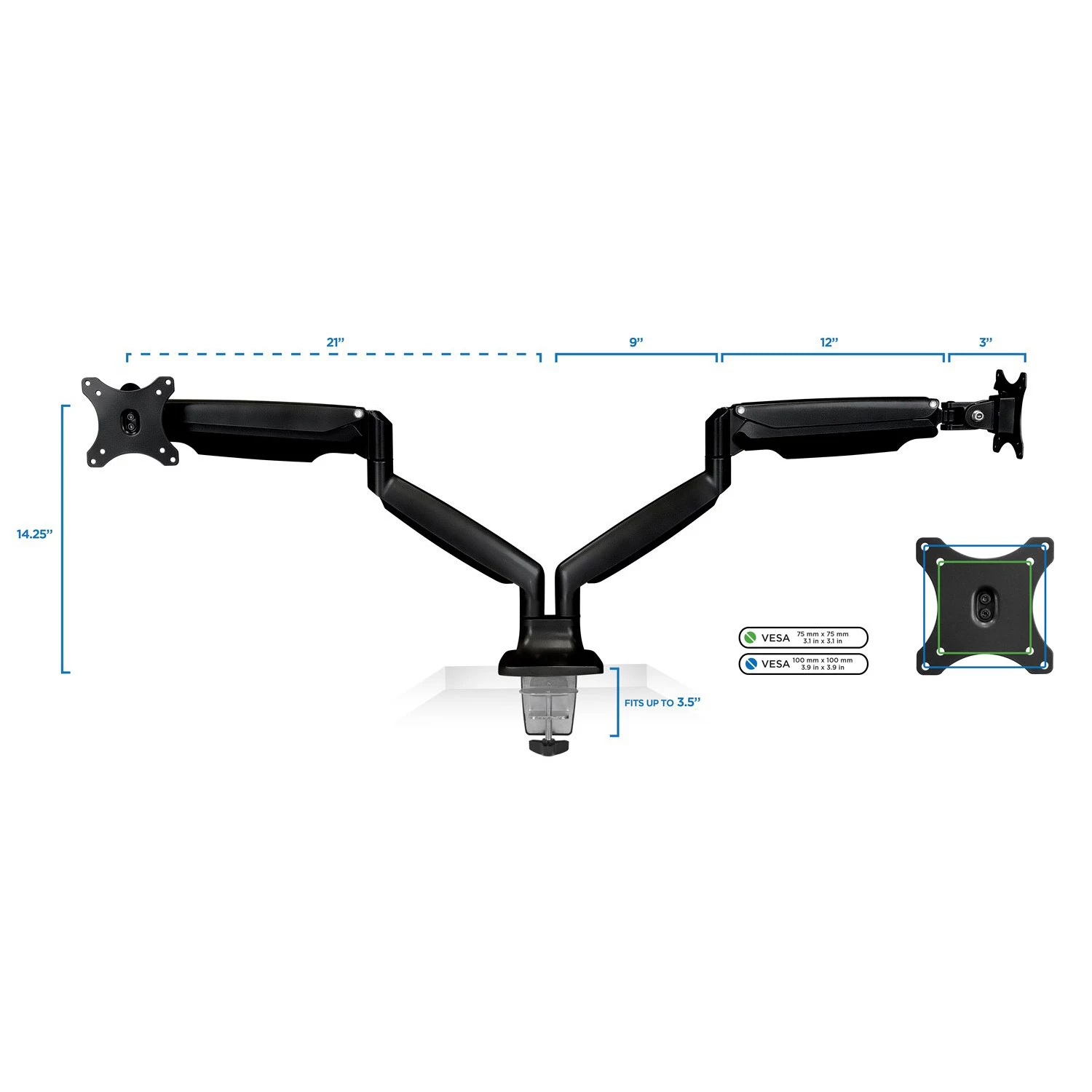 Featuring a gas spring mechanism, this dual monitor mount includes an adjustable counterbalance, which allows you to make fluid and easy height adjustments to your screen and position your displays in the optimum viewing position. Rotate your screens between portrait and landscape mode to suit your workflow needs. Cable management sleeves offer a clean, clutter-free look so you can utilize your desk space more efficiently.