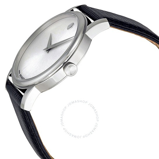 Men's Museum Classic watch, 39 mm stainless steel case, silver Museum dial with silver-toned dot and hands, black calfskin strap with stainless steel buckle.