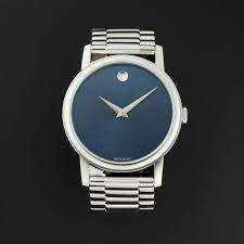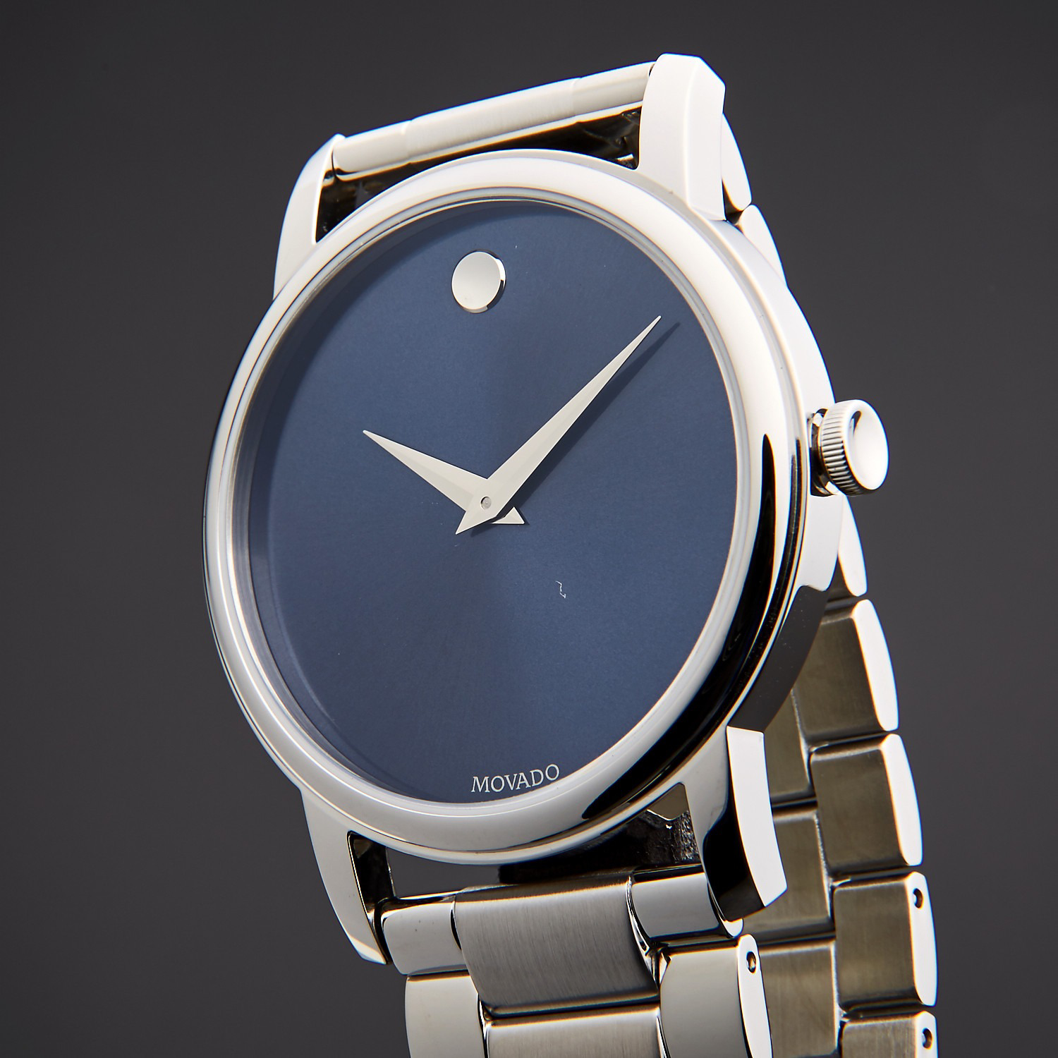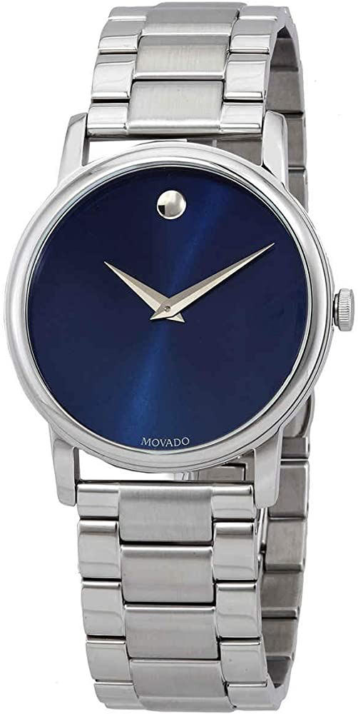 DIALDIAL COLOR: NavyTYPE: AnalogCRYSTAL: Scratch Resistant SapphireHANDS: Silver-tone Dauphine-styleSECOND MARKERS: No Markers. Movado Dot appears at the 12 o'clock positionBEZEL: FixedBEZEL COLOR: Silver-toneBEZEL MATERIAL: Stainless SteelCROWN: Pull / Push