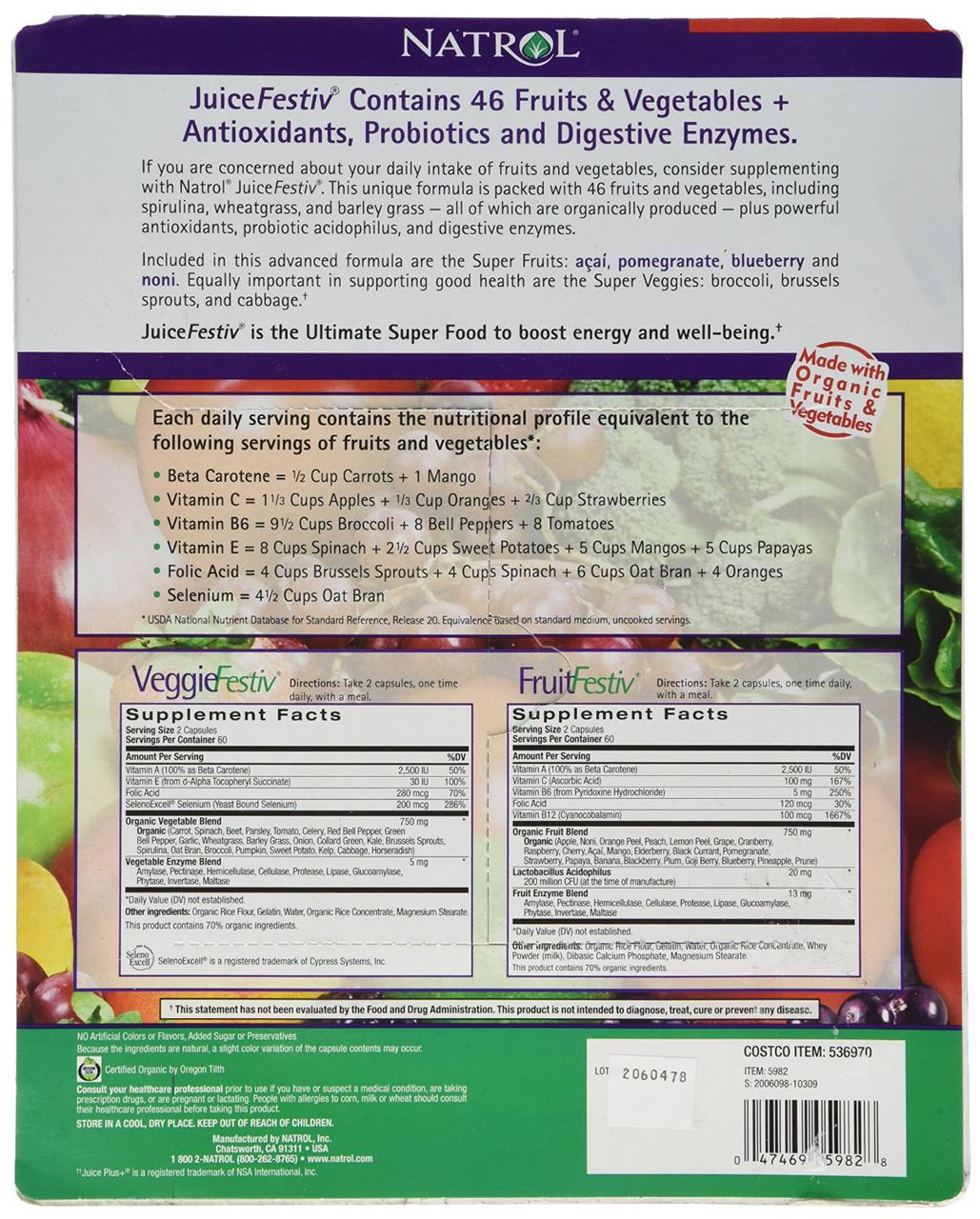 Natrol® JuiceFestiv® provides a variety of fruits, vegetables, grasses, and sea vegetables, to give you many of the benefits that nature intended. Natrol® JuiceFestiv® is enhanced by the addition of powerful antioxidants, probiotics and digestive enzymes.†
