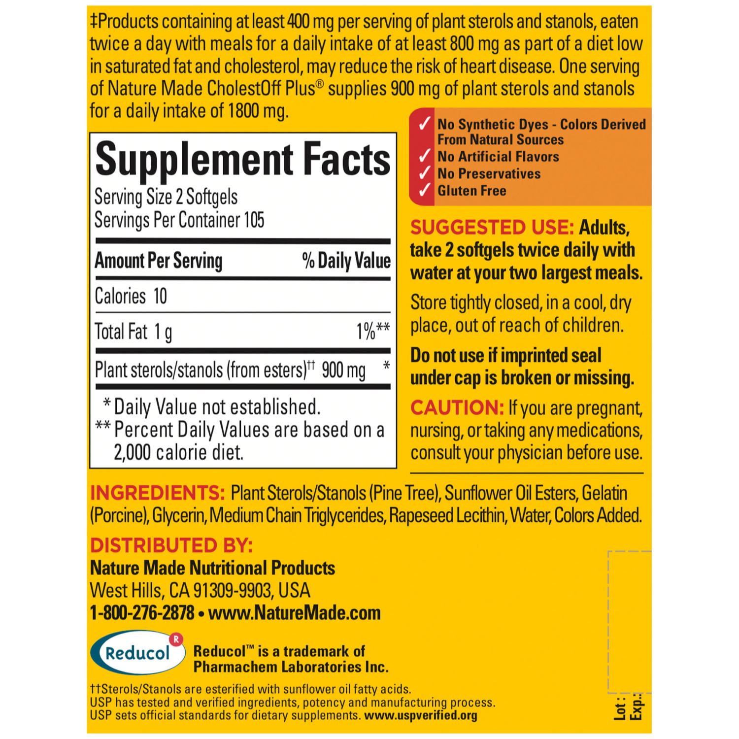 A healthy cholesterol level is an important part of heart health.‡ CholestOff Plus® is formulated with esterified sterols and stanols instead of free-form sterols and stanols that are formulated in CholestOff Original®. The esterified sterols and stanols have been clinically proven to have cholesterol-lowering benefits.‡ Additionally, Nature Made® has conducted clinical trials examining the effects of CholestOff Plus® on cholesterol. Our studies show that consuming CholestOff Plus® in addition to following the National Institutes of Health's National Cholesterol Education Program (NCEP) Therapeutic Lifestyle Changes (TLC) diet, reduced LDL cholesterol levels.‡