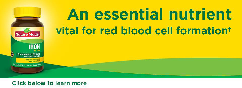 Nature Made Iron 65 mg helps individuals lacking in iron, meet their nutrient needs for this essential mineral.† 1 in 10 US adult premenopausal women (ages 15 - 49yrs) are deficient in iron.*