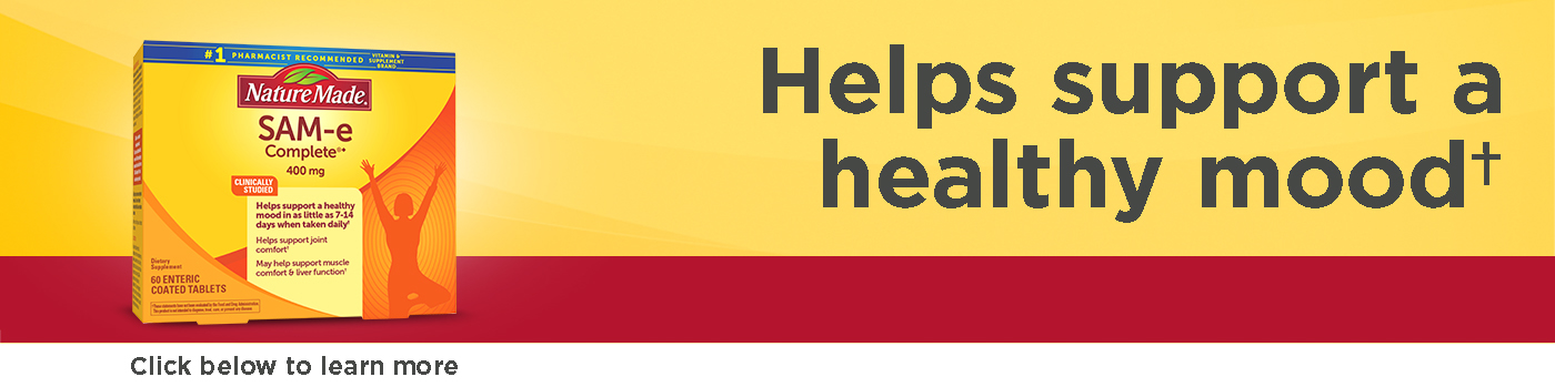 Nature Made® SAM-e Complete®** 400 mg can help replenish your SAM-e levels and help support a healthy mood.† Nature Made is the #1 best-selling brand of SAM-e supplements.‡ It’s backed by our satisfaction guarantee, and you will receive your money back if you find that it does not work for you.