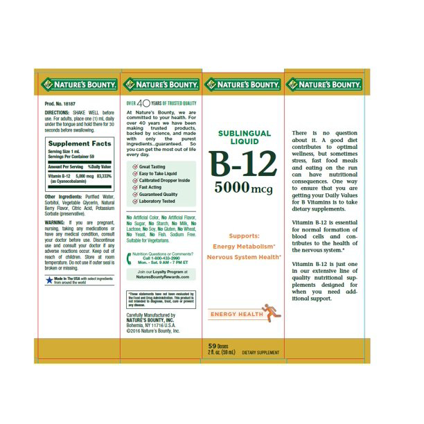Nature's Bounty Vitamin B12 Sublingual Liquid Natural Berry 5000 mg 2 fl oz