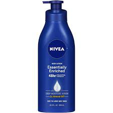 NIVEA Essentially Enriched body lotion is made with almond oil and NIVEA's deep moisture serum to nourish very dry skin. The almond oil reduces the roughness of your skin in as little as one application.
