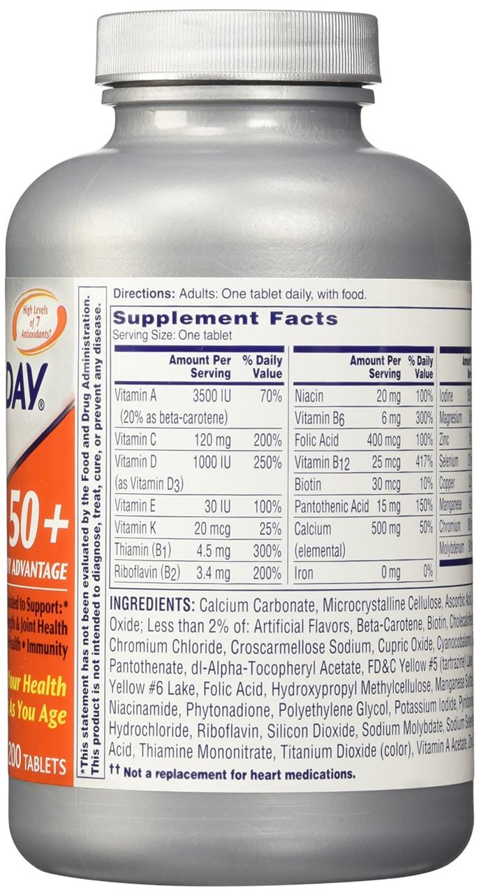 Research suggests that the health of our cells plays a key role throughout our entire lives. One A Day® Women's 50+ Healthy Advantage is formulated with 7 antioxidants* to help support cell health, and for other concerns women may have as they age like bone health, eye health and joint health.†