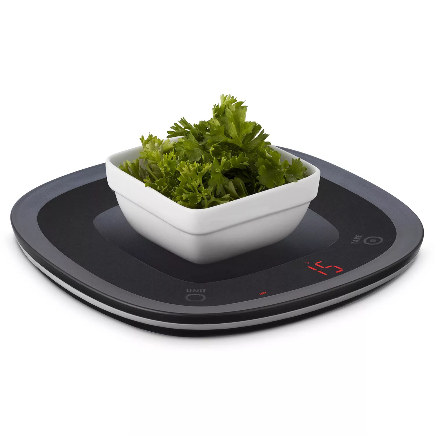 The Ozeri Touch utilizes a touch-sensitive Tare button to calculate the net weight of the ingredients being weighed by subtracting the weight of the container used. It also features a convenient touch-sensitive Unit button to change the unit of measurement displayed on the LED screen. The Ozeri Touch Waterproof Digital Kitchen Scale runs on 3 AAA batteries (included) and features a low battery indicator.