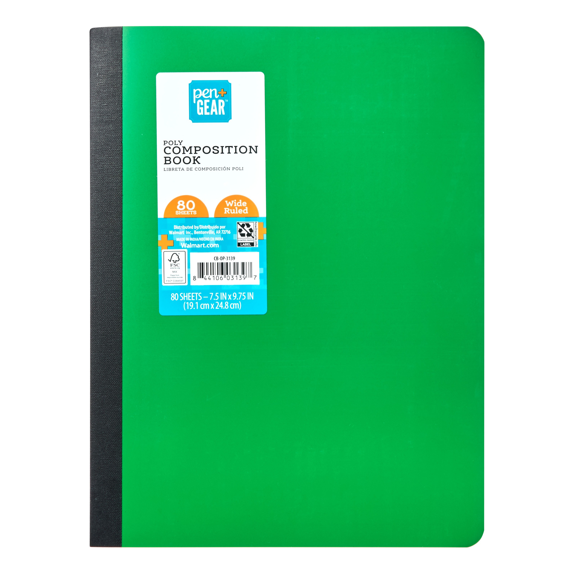 Our Pen and Gear Poly Composition Books provide you with the essential space you need to jot down lists, write notes and work on homework. This composition book features durable plastic front and back covers in a vibrant green shade that are flexible enough to lie flat when writing. Each book measures a compact 7.5-inches by 9.75-inches, so you can easily carry one in your backpack, laptop bag, or tote bag. The permanently bound pages keep your writings secure while the plastic covers help protect the pages from tears and spills. Plus, with 80 wide-ruled pages to fill, you'll have all the paper you need to keep everything from meeting notes to shopping lists all written down and easily on hand. Paired with your favorite Pen and Gear Retractable Gel Ink Pens, you will be ready to take a note at a moment's notice. The perfect all-purpose notebook is found with our Pen and Gear Poly Composition Book.