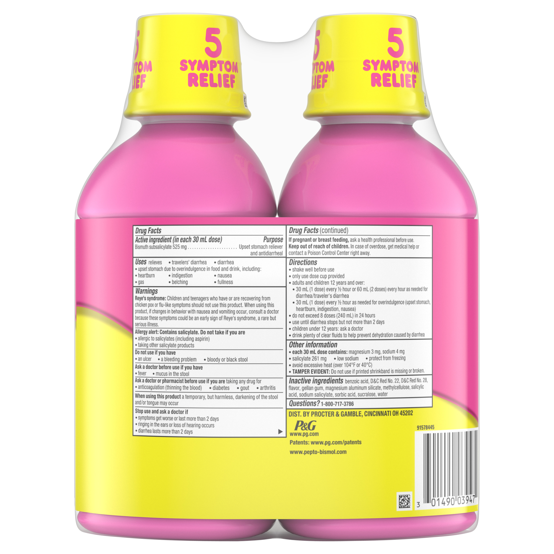 Pepto Bismol Liquid for Nausea, Heartburn, Indigestion, Upset Stomach, and Diarrhea Relief, Original Flavor 2x16 oz: 5 SYMPTOM Digestive Relief: Nausea, Heartburn, Indigestion, Upset Stomach, Diarrhea