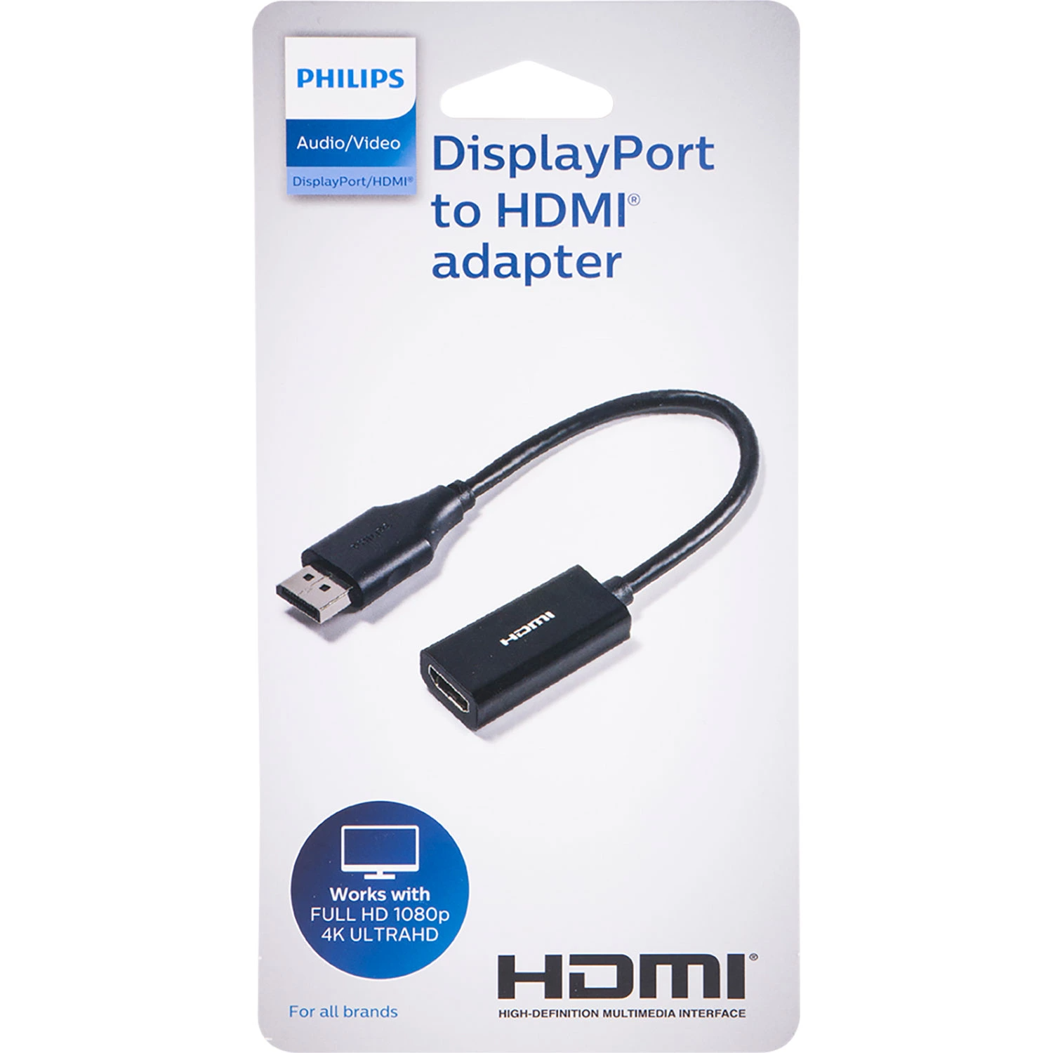 The pocket-sized Philips DisplayPort to HDMI adapter allows you to mirror or stream high-definition video content straight from your laptop or tablet to HDMI-enabled devices. In no time at all, you’ll enjoy screening your favorite movies and TV shows in a bigger, better way. Bring it to display your digital presentation at a business meeting or take it along for a movie night at a friend’s house. Give your home entertainment system a boost with a Philips DisplayPort to HDMI Adapter.