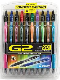 Known for its smooth writing and comfortable grip, the G2 product line includes four point sizes, more than 25 vibrant color options. With the G2 Fashion Collection, G2 Mosaics, and G2 Metallics launches, it is the only gel ink pen that offers this level of customization – because, after all, pens aren’t one size fits all. G2 has been proven to write longer than all other gel brands, so finally, there is a pen that works as hard as you do. If you're looking for a pack of reliable, clean pens, then grab a pack of Pilot Retractable Gel Pens with Comfort Grip. These no-smear G2 gel pens apply ink cleanly and smoothly and feature fine point tips that are ideal for writing. For those who write with pens regularly, these retractable gel pens are sure to add splashes of color to your writing.