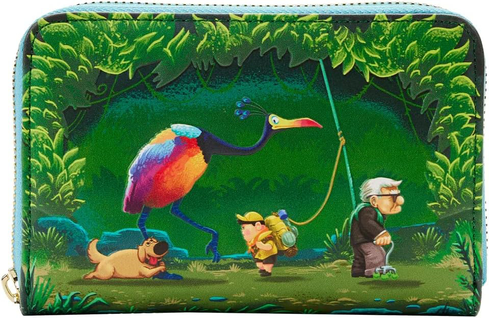 Quick Overview Ready to earn your next Wilderness Explorer badge? Take a stroll through Paradise Falls with the Loungefly Up Moment Jungle Stroll Zip Around Wallet. On the front of this airborne accessory, Dug, Kevin, Russell, and Carl wander through the jungle. On the reverse side, Carl and Ellie’s house floats through the sky. With four slots for holding cards and a clear slot for holding ID, this trailblazing wallet will keep your travel essentials safe on any expedition. The Loungefly Up Moment Jungle Stroll Zip Around Wallet is made of vegan leather. Wallet zips closed with shiny gold hardware and features printed details. Take note of the coordinating inside lining.