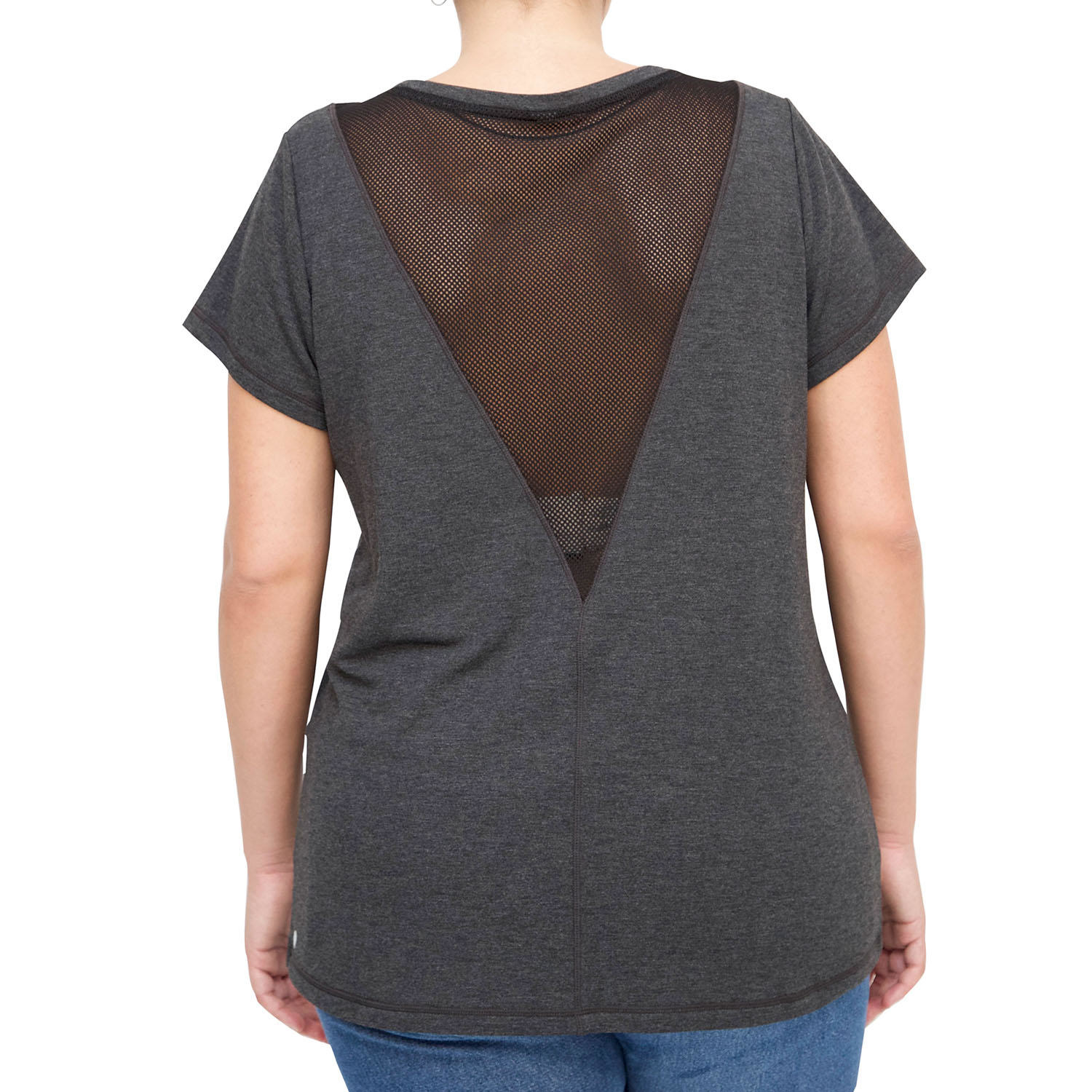 This flattering French terry top is a versatile piece perfect for casual looks or workwear. Layer it under a a hoodie or your favorite denim jacket for a day of fun, or pair it with a tailored blazer and trousers for the perfect office look. Crew neck and short sleeves make it a classic staple item in any wardrobe. You'll love the mesh insert in back and the hi-lo hemline, which makee it thoroughly modern. Roomy relaxed fit for ultimate comfort. You may need one in every color!