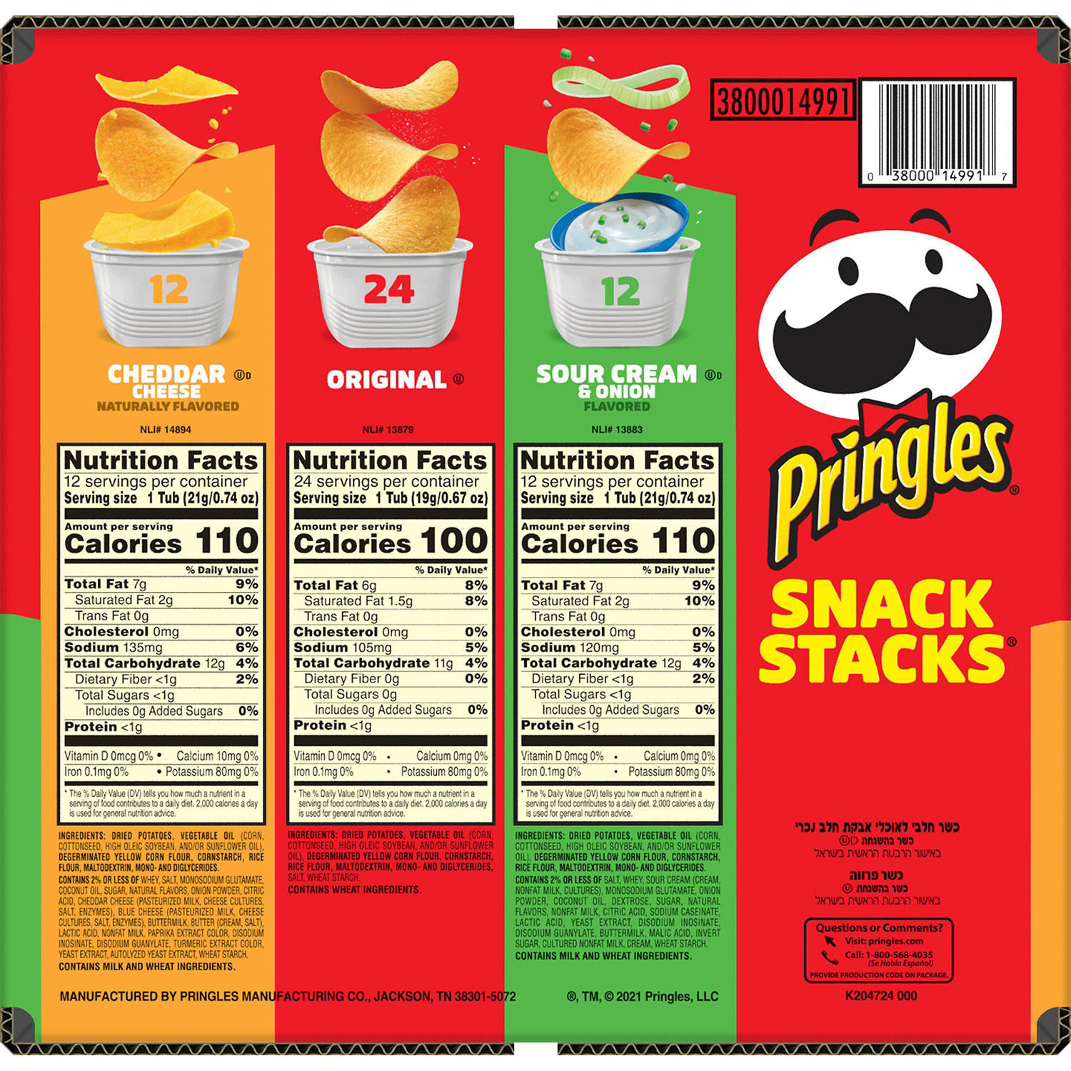 Our Pringles Snack Pack features the famous stackable potato chip with a delicious, salty crunch in each and every bite. This Pringles Snack Stacks Variety Pack comes in three different flavors so that everyone can pick their favorite.