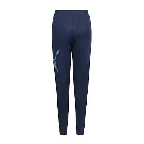Lapis screen print with accent foil. Ribbed waistband and bottom cuffs. No side seams.