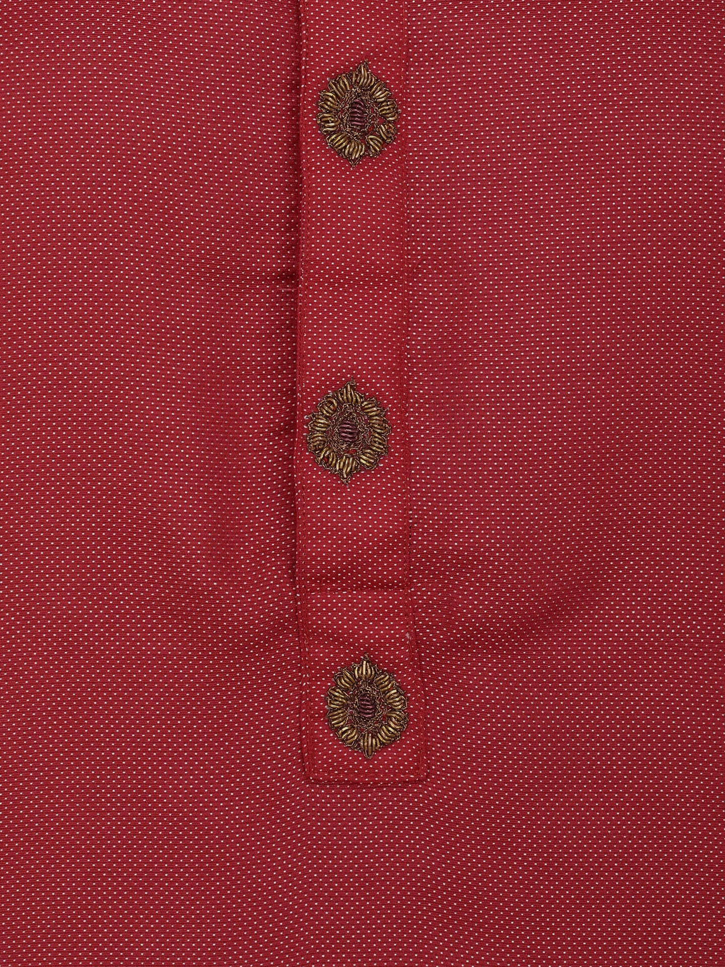 Colour : RedFabric : Mixed CottonValue Addition : Erri EmbroideryCollar/Neck : Band CollarCut /Fit : Slim FitSleeve : Long SleevePocket : Side PocketLength : LongCare : Hand Wash With Mild Detergent In Cold WaterMadi in : BangladeshBrand Name : ARONGUse for : Men