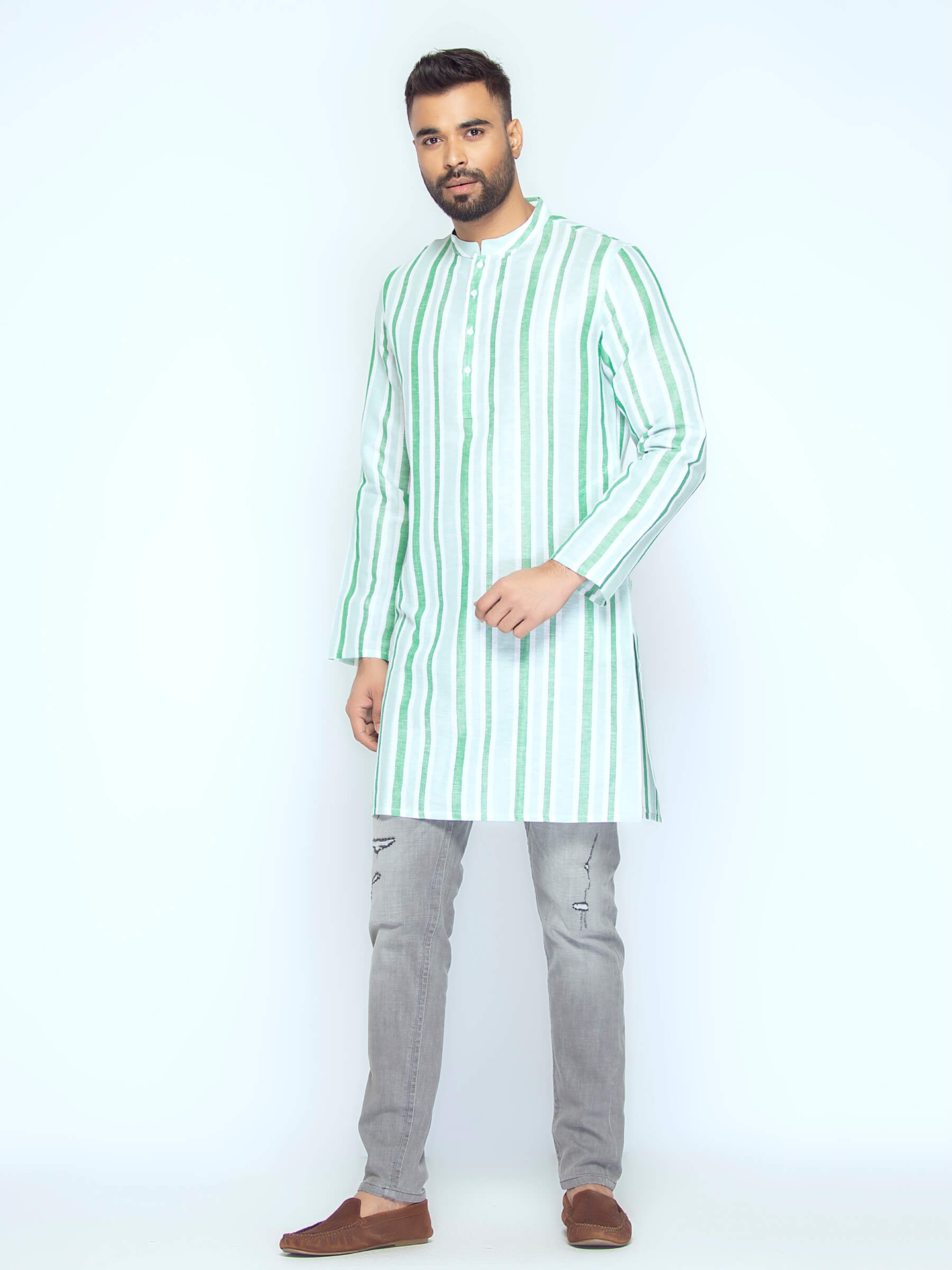 Sage green and white striped slim fit cotton short kurta. this kurta useing very comfortable. made in bangladesh.