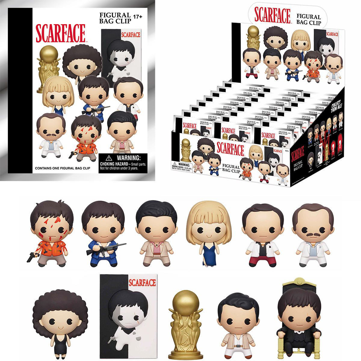 Embrace the gritty world of organized crime and immerse yourself in the underworld with the Scarface Figural Bag Clip Blind Pack. Inspired by the enduring legacy of the classic crime film, this blind pack contains a thrilling assortment of 3D Figural Bag Clips showcasing iconic characters and symbols from the world of Tony Montana. Each blind pack offers a surprise reveal, allowing fans to collect their favorite characters, including Tony Montana himself, as well as memorable props and logos from the film. Crafted with attention to detail and durable materials, these bag clips capture the essence of Scarface, making them a must-have for any fan's collection. With an average length of about 2 inches (excluding the clip), these bag clips are perfect for displaying your passion for Scarface on backpacks, keychains, or purses. Embrace the criminal underworld and relive the iconic moments of Scarface with the Scarface Figural Bag Clip Blind Pack.