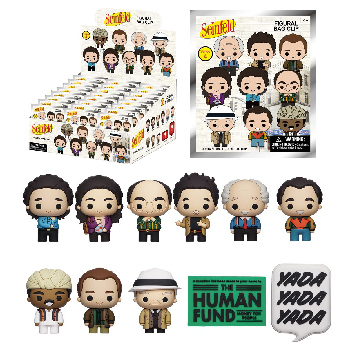 Experience the comedic genius of Seinfeld with the Series 4 Figural Bag Clip Blind Pack. Dive into the world of Jerry, Elaine, George, and Kramer with this blind pack that brings beloved characters to life in the form of Figural Bag Clips. Crafted from durable 3D Foam and PVC, these bag clips showcase intricate details, capturing the essence of the classic sitcom. Each blind pack is filled with surprises, making it an exciting addition to any Seinfeld fan's collection. With an average length of about 2 inches (excluding the clip), these bag clips are the perfect accessories to showcase your love for Seinfeld. Elevate your collection with these officially licensed authentic products and share the laughter with Seinfeld.