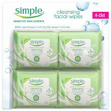 Everyday cleansing can be harsh on skin. Designed for sensitive skin, Simple Cleansing Facial Wipes are merciless on makeup yet softer than silk. These improved face cleansing wipes are made from soft fibers, gentle cleansers, purified water and skin-loving ingredients such as vitamin B5 and vitamin E.