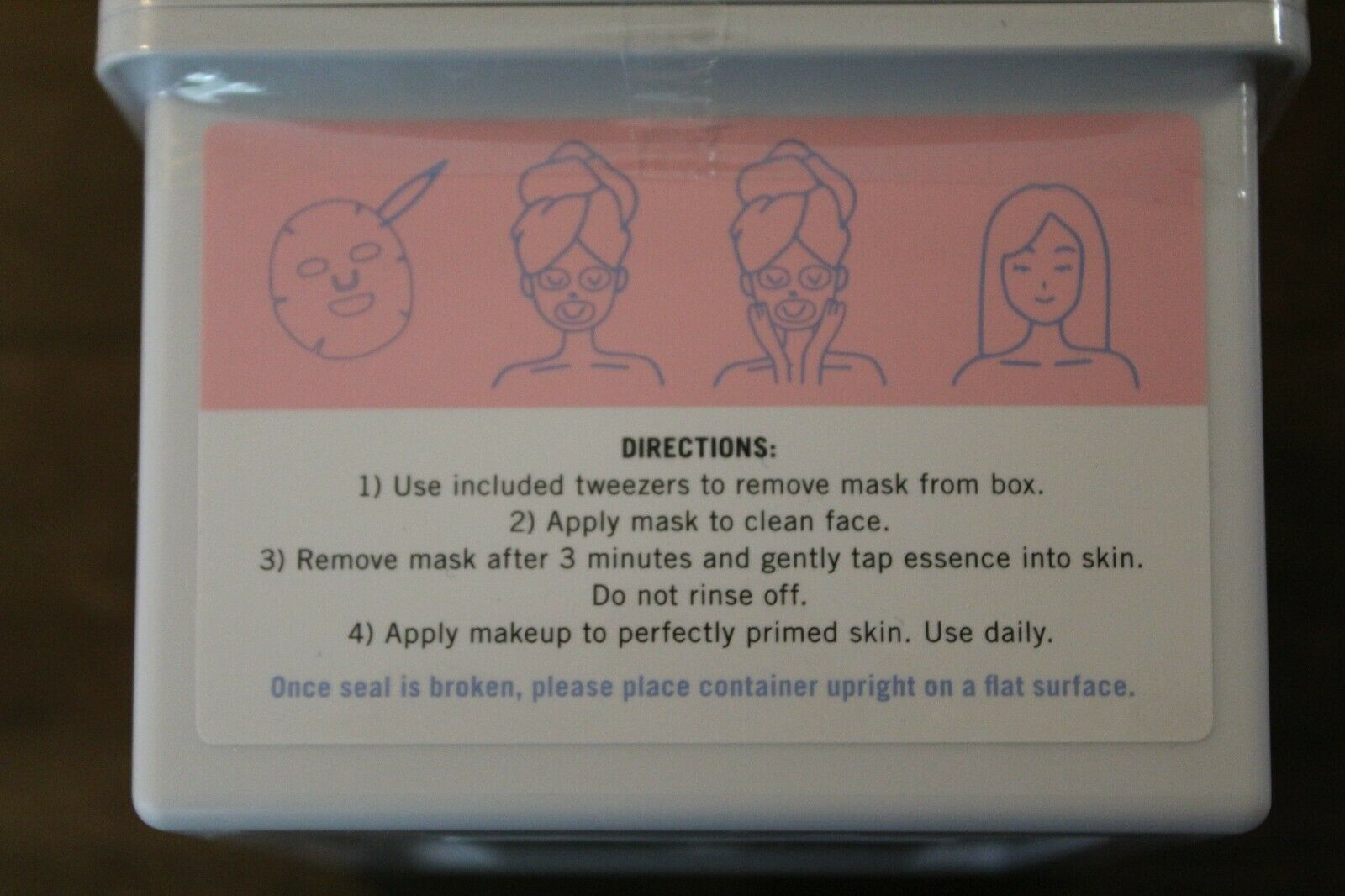 30 sheet masks are housed in a single case. Use included mini tweezers to pull out the mask. Great value!