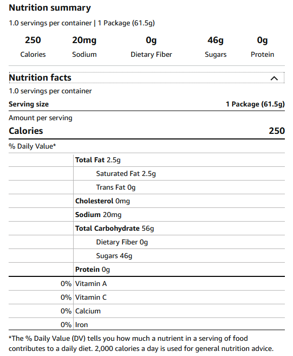 Sugar, Corn Syrup, Hydrogenated Palm Kernel Oil, Less Than 2% of: Citric Acid, Tapioca Dextrin, Modified Corn Starch, Natural and Artificial Flavors, Colors (Red 40 Lake, Titanium Dioxide, Red 40, Yellow 5 Lake, Yellow 5, Yellow 6 Lake, Yellow 6, Blue 2 Lake, Blue 1, Blue 1 Lake), Sodium Citrate, Carnauba Wax.