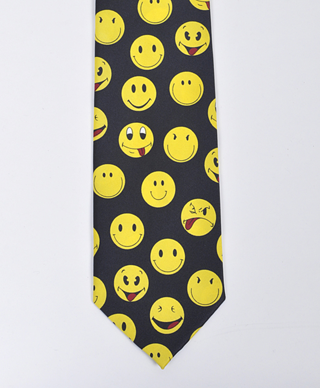 addition to your tie collection. The necktie has pictures of smiley faces all over. A definite