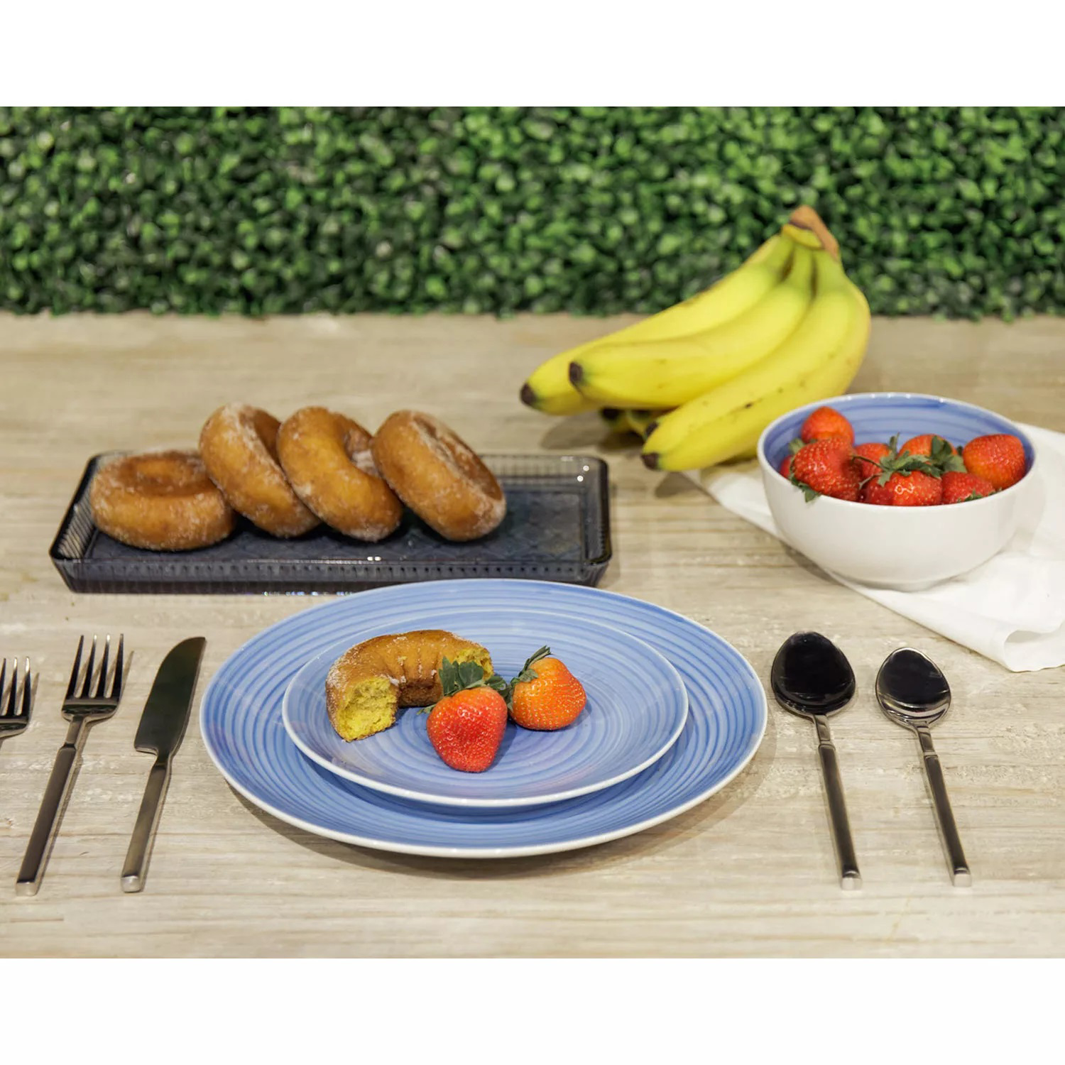 Elevate everyday dining with this hand-glazed dinnerware set. Featuring a distinct swirl with a watercolor wash, the durable stoneware construction ensures lasting use. Versatile and casual, it's a family-friendly collection suited for breakfast, dinner, and every meal in between.