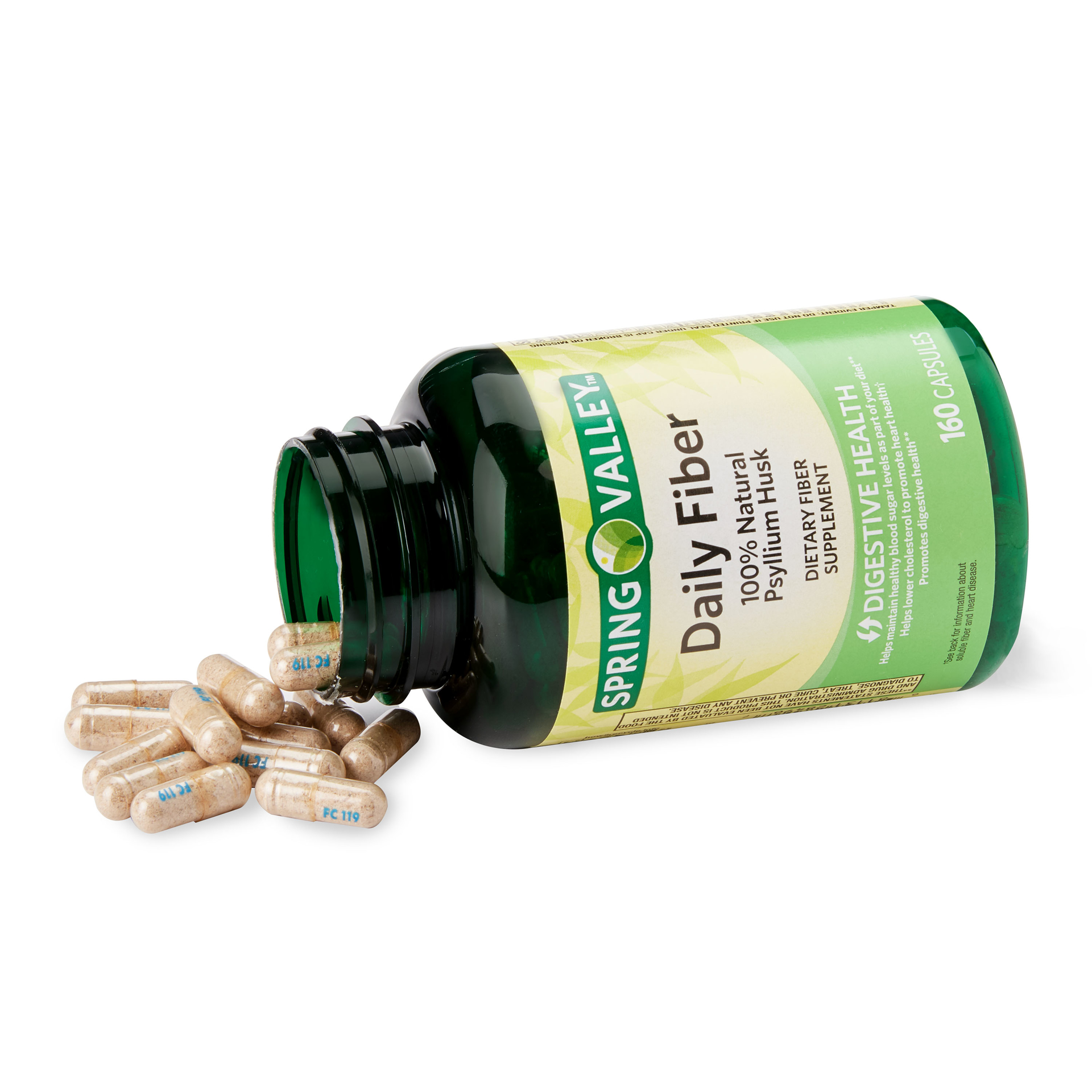 Spring Valley Daily Fiber 100% Natural Psyllium Husk Capsules, 160 Count: