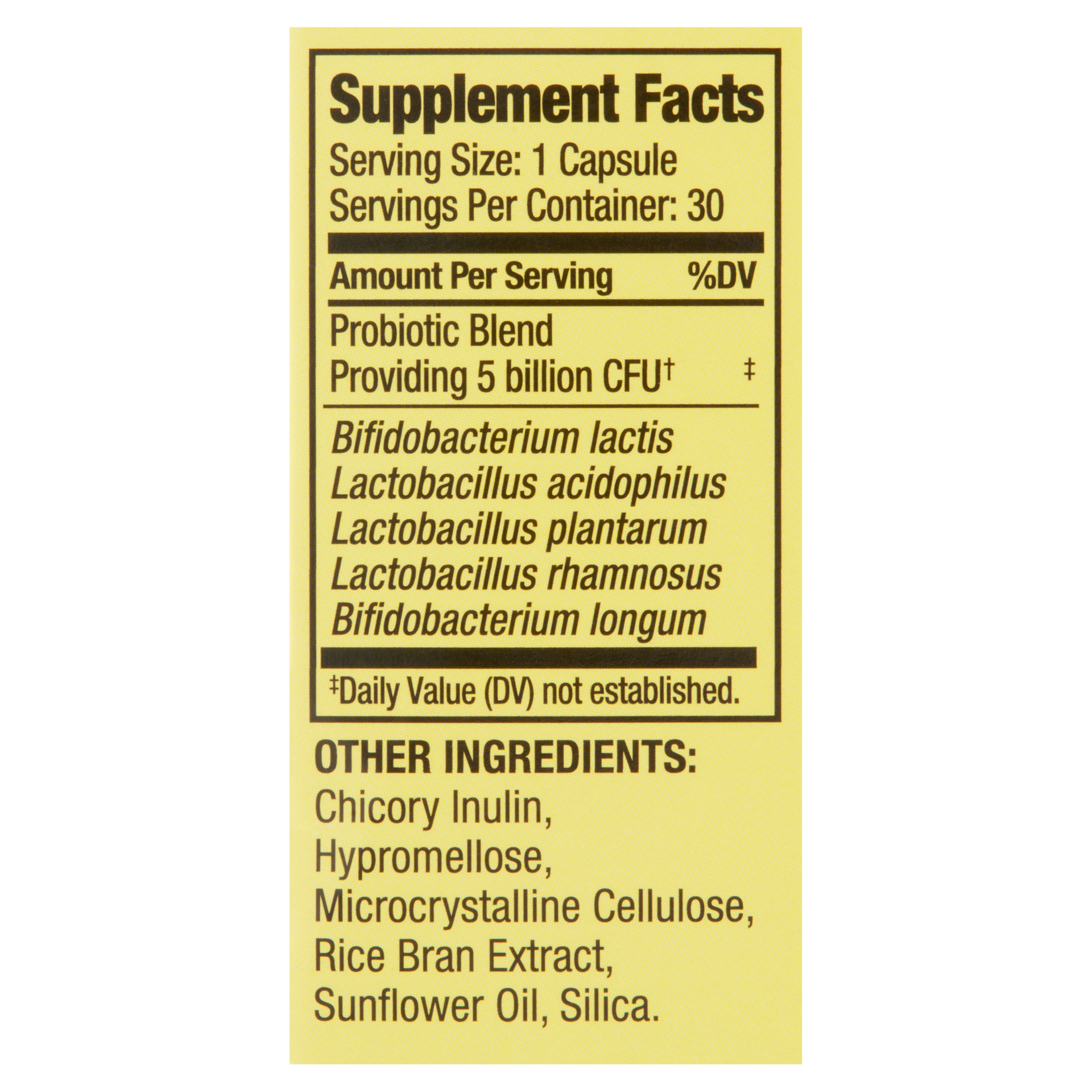 Spring Valley Extra-Strength Probiotic Vegetable Capsules can help support a healthy culture of beneficial bacteria in your digestive system to promote better digestion and overall immune health. Your digestive system is home to trillions of good bacteria known as probiotics that assist with several bodily functions, including healthy digestion. However, several aspects of our lifestyles, including aging, long travels, poor diets, and daily stress can take a toll on your body's balance of good bacteria. Taking a probiotic as part of a healthy regimen can help maintain proper bacterial balance. This supplement has been formulated with various strains of probiotics that are optimized to help your body while in the presence of stomach acids. Get healthy gut support with Spring Valley Extra-Strength Probiotic Vegetable Capsules.