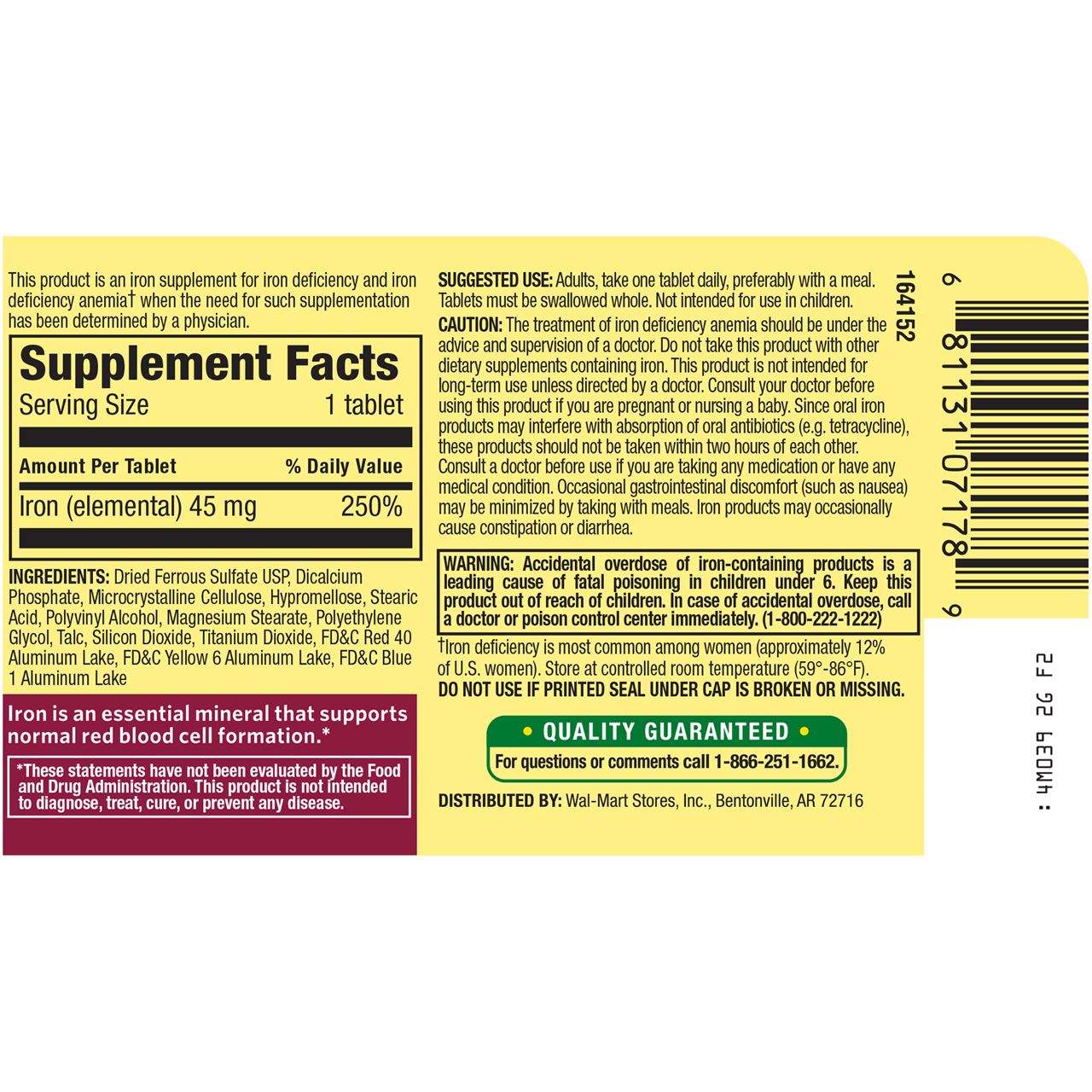 Spring Valley Slow-Release Iron Tablets are a supplement for iron deficiency and anemia when the need for this supplementation has been determined by a physician. The 45mg of elemental iron in each tablet is equivalent to 142mg of ferrous sulfate. Iron is vital for healthy red blood cell formation. The slow-release iron supplement comes in a convenient 30-count bottle. This time-release delivery system gently provides high-potency iron and may reduce symptoms associated with immediate-release iron tablets. The small iron dietary supplement tablets are also easy to swallow. They can be taken in a once-a-day dosage.