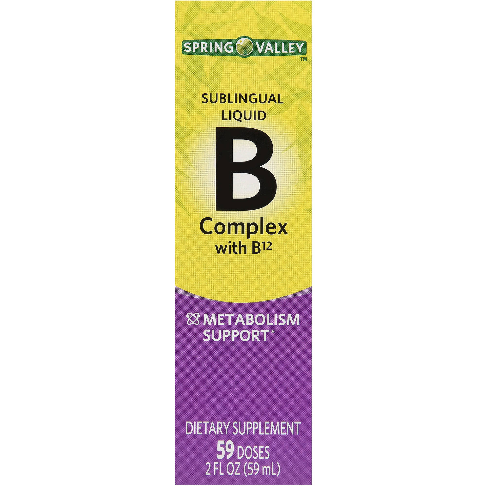 Spring Valley understands living a healthy, balanced lifestyle is the key to being your best self. With an affordable range of products inspired by nature, Spring Valley supports you and your family's health and holistic wellbeing. Spring Valley Sublingual Liquid Vitamin B Complex Supplement offers a distinct advantage over conventional supplements - it comes in an easy-to-use liquid form which is ideal for people who have difficulty swallowing tablets and capsules. The B vitamins work in tandem to promote a healthy nervous system and support energy metabolism. Spring Valley Vitamin B Complex Sublingual Liquid with B12, 59 Doses, 2 Fl Oz.