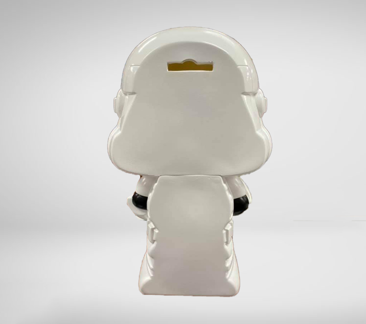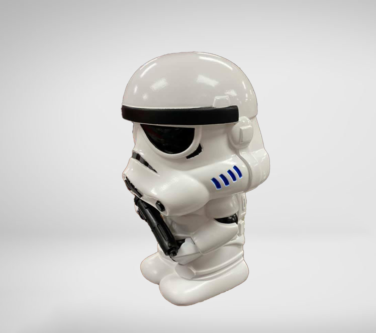 Crafted from durable PVC material, this piggy bank ensures longevity while capturing the essence of the iconic Storm Trooper helmet and armor. The coin slot at the back and the easy-to-remove plastic cork at the base make saving and accessing your funds convenient and enjoyable.