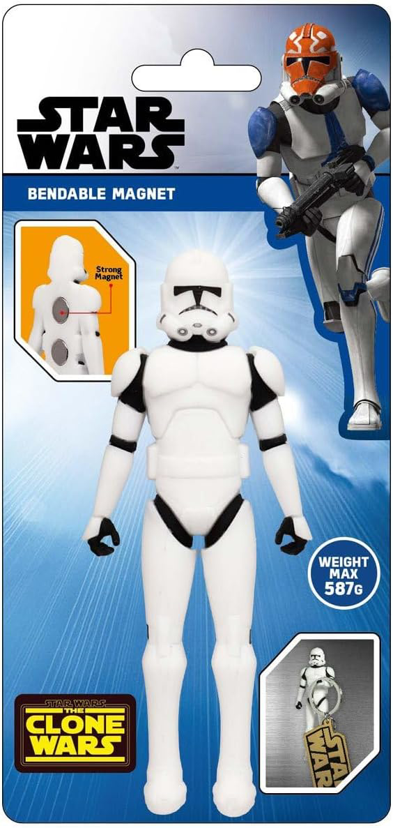 Bring the might of the Empire to your magnetic surfaces with this bendable Stormtrooper magnet. Join the ranks of the Galactic Empire with this Stormtrooper Character Bendable Magnet from Star Wars. Crafted with meticulous detail, this magnet features the iconic Stormtrooper in a poseable design, allowing you to customize its appearance to your liking. Measuring approximately 5.71 inches in height, 3.11 inches in width, and 0.51 inches in depth, it's the perfect size for adorning your fridge, locker, or any magnetic surface.