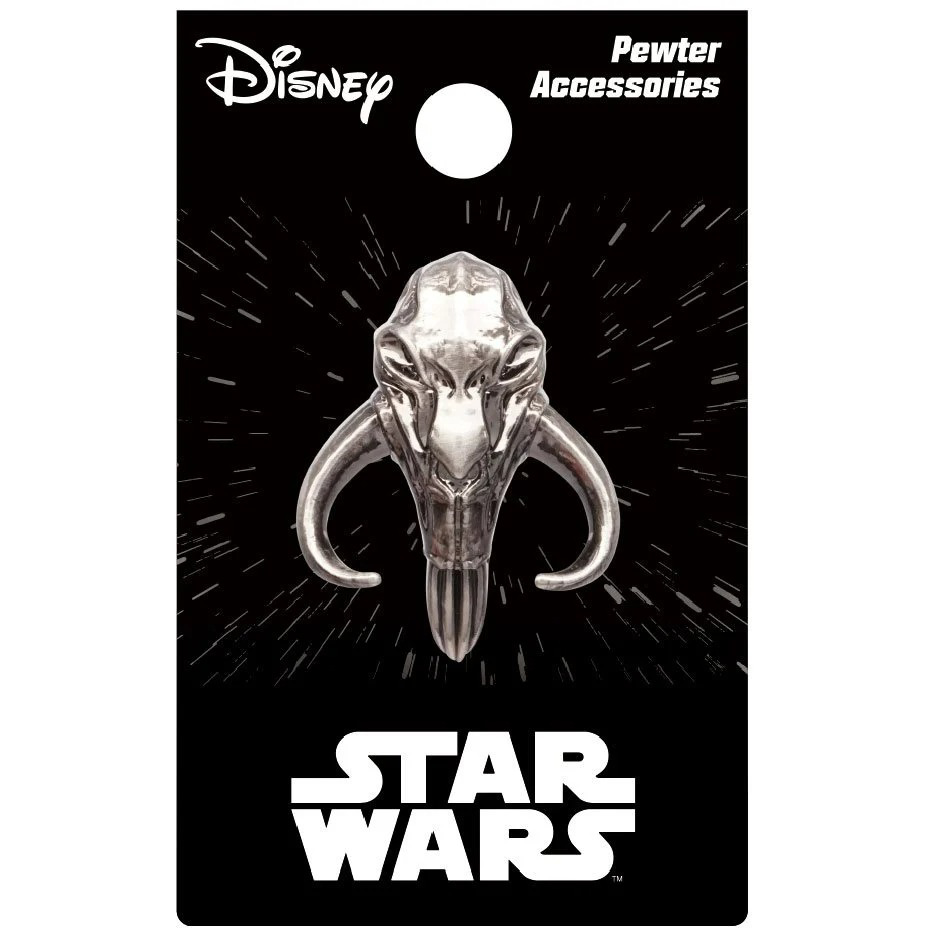 Declare your loyalty to the Mandalorian creed with the Star Wars The Mandalorian Mythosaur Signet Pewter Lapel Pin. Officially licensed by Lucasfilm, this lapel pin proudly displays the legendary symbol of the Mythosaur Signet, emblematic of Mandalorian heritage and honor. Crafted from durable pewter, this pin boasts intricate detailing and a premium finish, making it the perfect accessory for fans of Star Wars: The Mandalorian and devotees of Mandalorian tradition. Whether you're attending a convention, demonstrating your Mandalorian pride, or expanding your collection, this pin is a distinguished emblem of your commitment to Mandalore.
