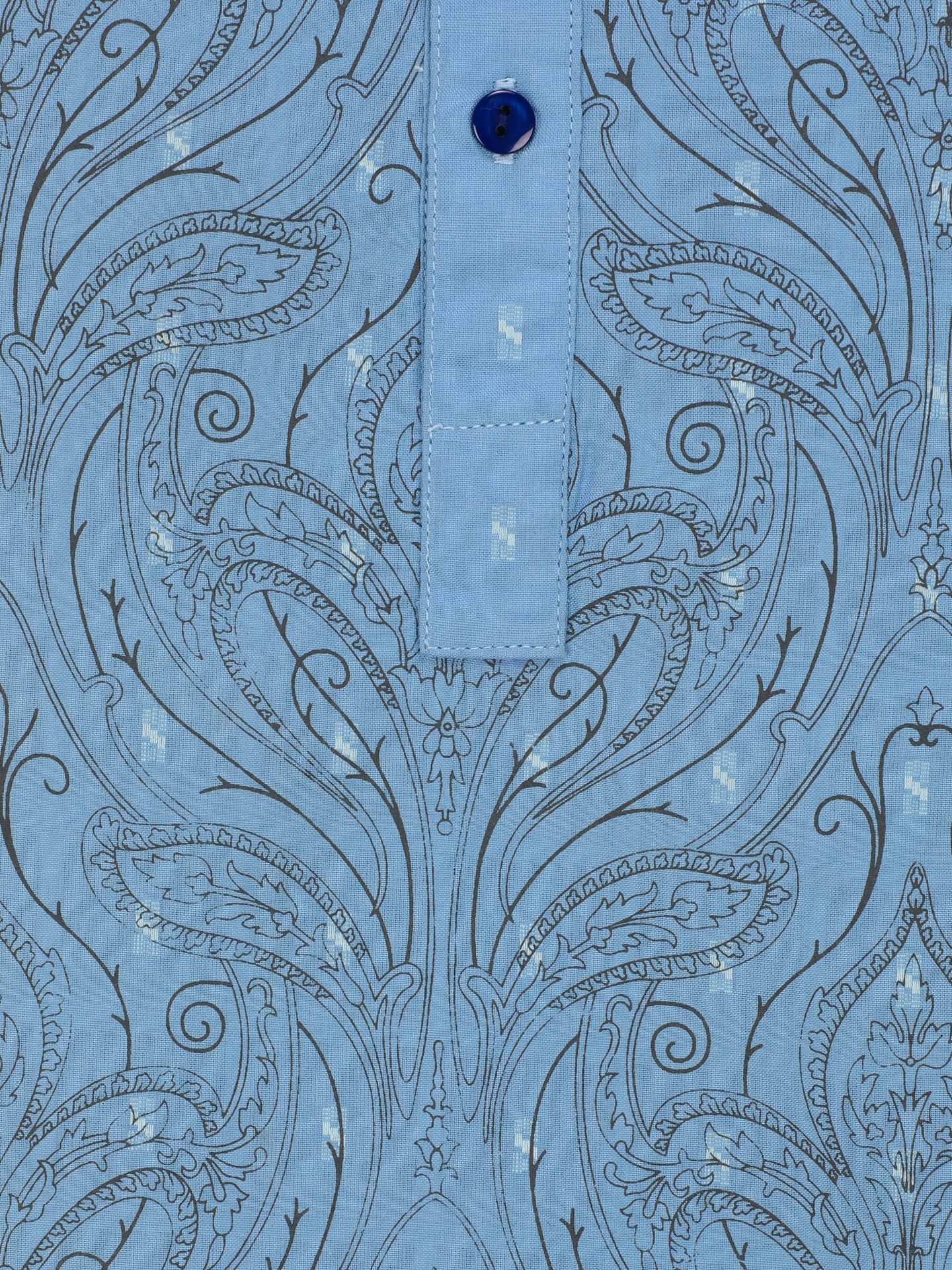 Colour : Stone BlueFabric : CottonValue Addition : Screen PrintCollar/Neck : Band CollarCut /Fit : Slim FitSleeve : Long SleevePocket : Side PocketLength : LongCare : Hand Wash With Mild Detergent In Cold WaterMadi in : BangladeshBrand Name : ARONGUse for : Men